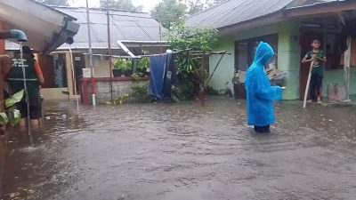 Banjir yang terjadi akibat curah hujan tinggi membuat beberapa rumah warga tergenang air.