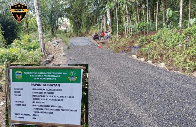 Tasikmalaya, (PJNN) — Pemerintah Desa Padakembang, Kecamatan Padakembang, Kabupaten Tasikmalaya terus melanjutkan pembangunan infrastruktur melalui proyek pengaspalan jalan di Kampung Pajagan. Proyek ini menggunakan anggaran sebesar Rp 98.000.000 yang bersumber dari Bantuan Keuangan Provinsi Jawa Barat kepada Desa Tahun Anggaran 2025.